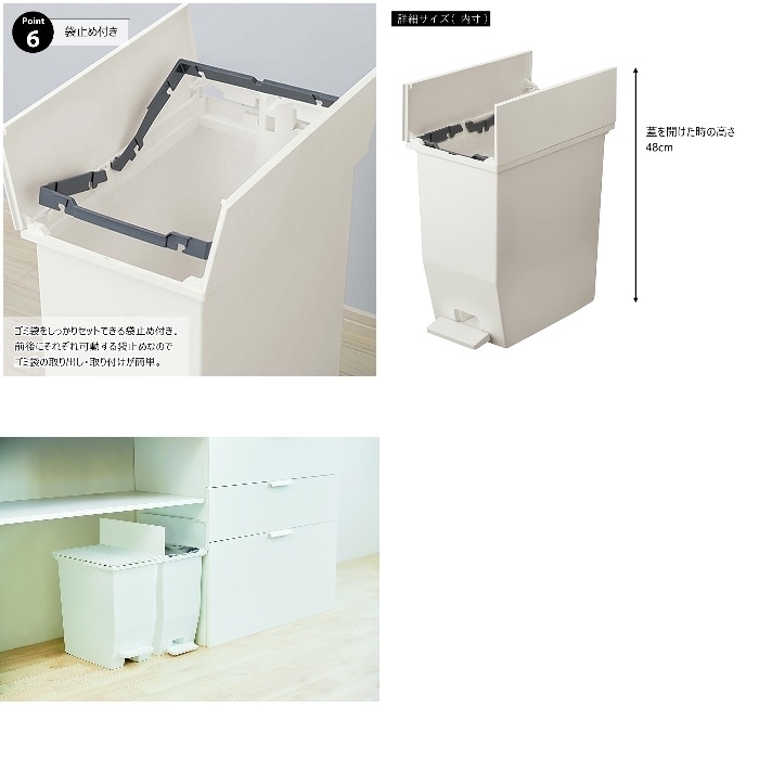●ゴミ袋をしっかりセットできる袋止め付き。