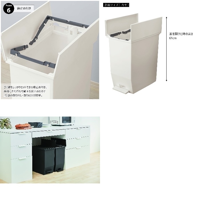 ●ゴミ袋をしっかりセットできる袋止め付き。
