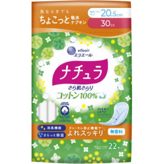 ナチュラ さら肌さらり コットン100% よれスッキリ吸水ナプキン20.5cm 30cc 22枚4902011890396