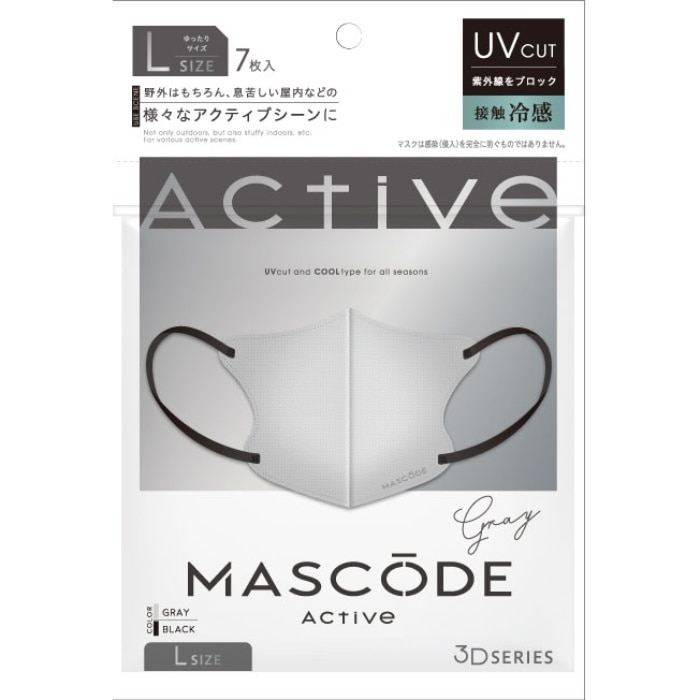 マスコード 3Dマスク アクティブ Lサイズ 7枚入り AL01 グレー4526371142973