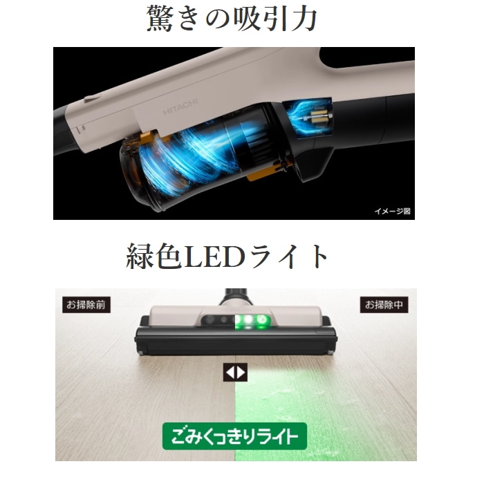 ・明るく感じる波長に近い緑色LEDライトで、見えにくいごみも浮かび上がらせる特許技術「ごみくっきりライト」を搭載。