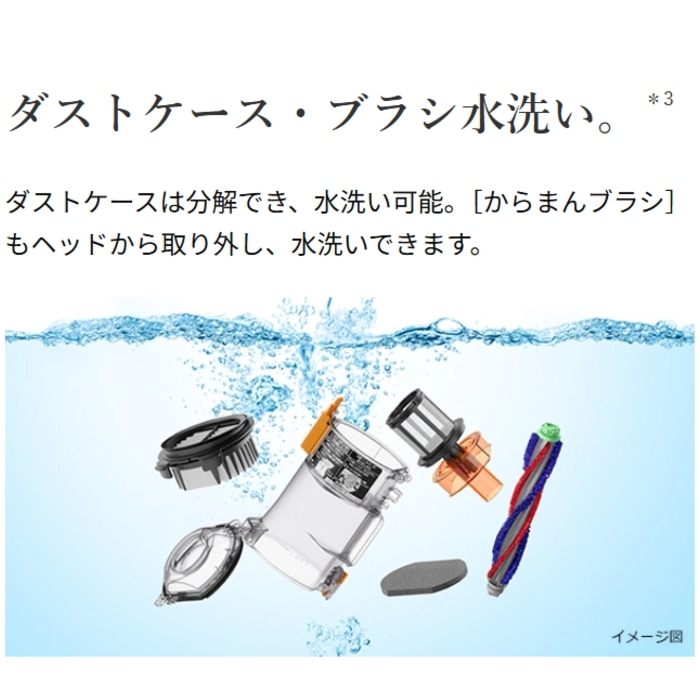 ・小型・軽量のファンモーターを搭載し、従来より空気を吸い込む力が約20%向上。流体解析技術を駆使した効率のよいサイクロン構造を採用。