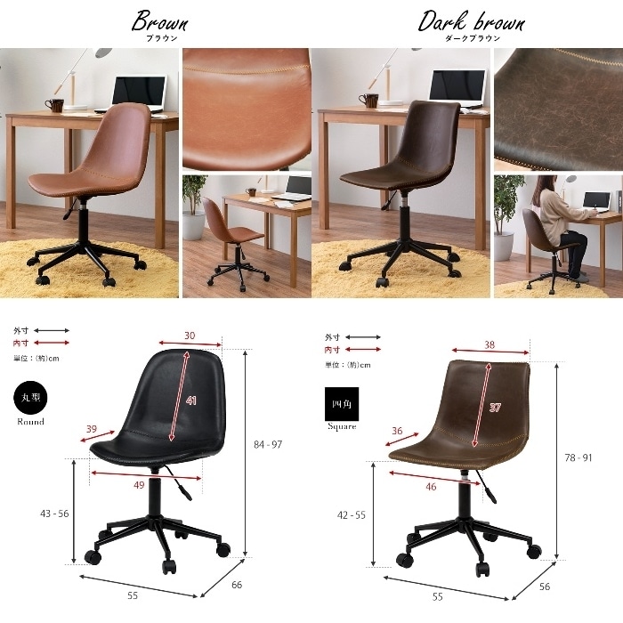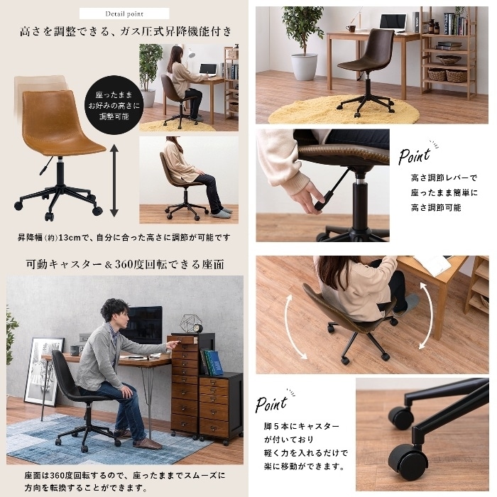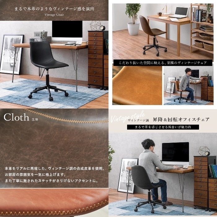[直送5]使いやすい昇降・回転オフィスチェア。リモートワーク・オフィス向け ヴィンテージ調キャスター付き昇降チェア(丸型) LC-4497BK ブラック4934257281102