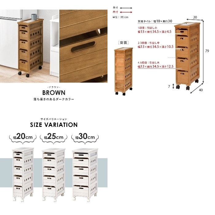 [直送5]「隙間」に収まる桐製ストッカー。耐熱天板タイル 隙間収納 キッチン・リビング用 キャスター付ストッカー MUD-6780NA ナチュラル4934257235006