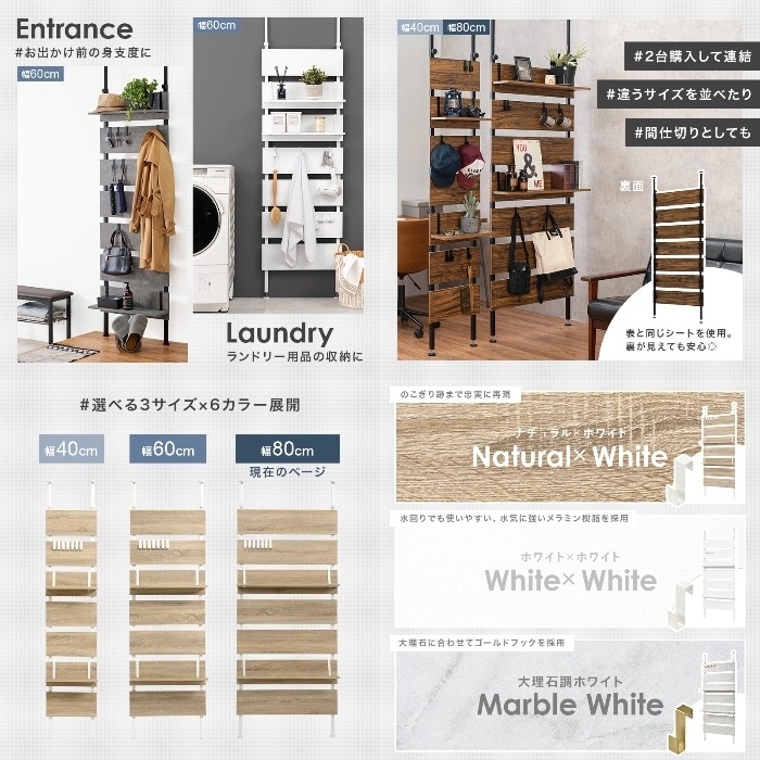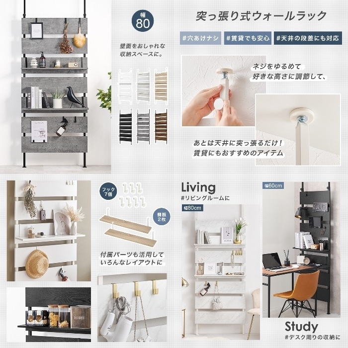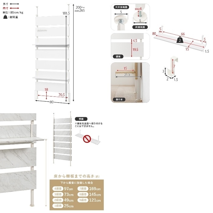 [直送5]突っ張りウォールラック 穴あけなし 簡単取り付け パーテーション 間仕切り 幅80cmタイプ KTR-3148WH ホワイト/ホワイト4934257282024