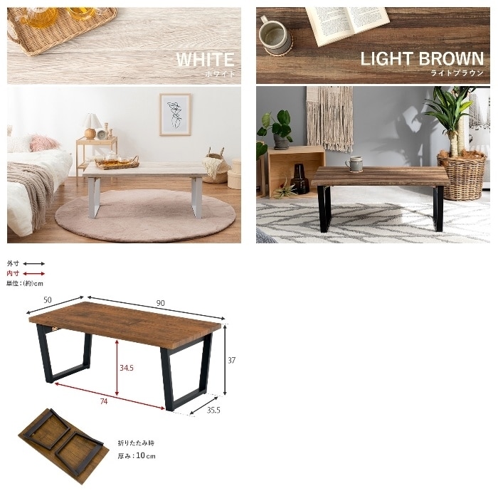 [直送5]収納しやすい折り畳み式センターテーブル。リビング用 一人暮らし向け 折れ脚 シンプル・スタイリッシュローテーブル LT-4397WH ホワイト