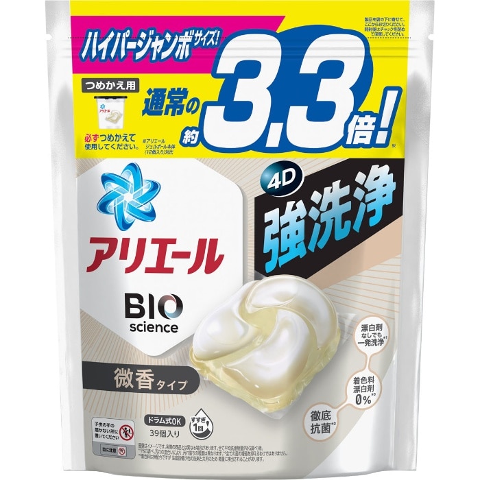 アリエールジェルボール4D微香 詰め替え ハイパージャンボサイズ 39個4987176062369