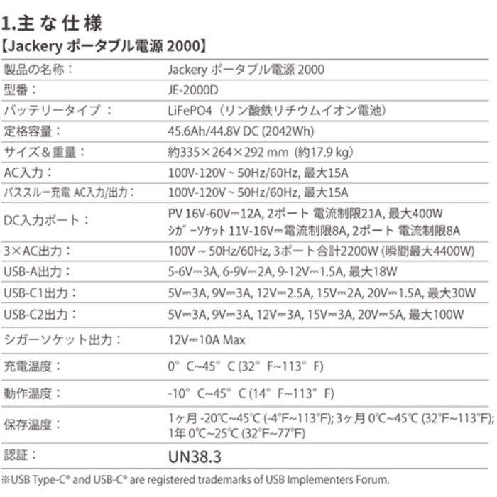 充電池容量: 2042Wh/45600mAh