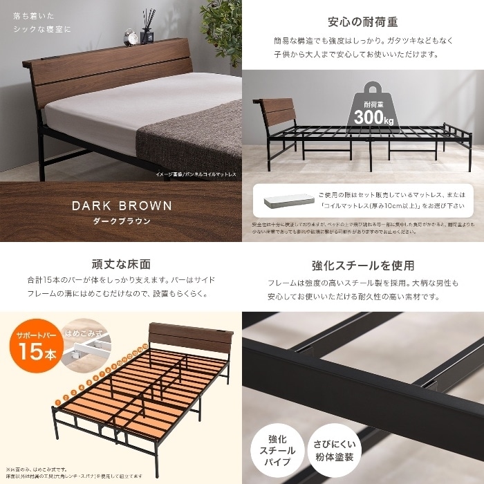 お部屋に抜け感が生まれるベッド 2口コンセント付きヘッドボード 耐荷重300kg スチールフレームベッド セミダブルサイズKH-3074SDBR3302ダークブラウン](/img/goods/3/3_2551510001127.jpg)