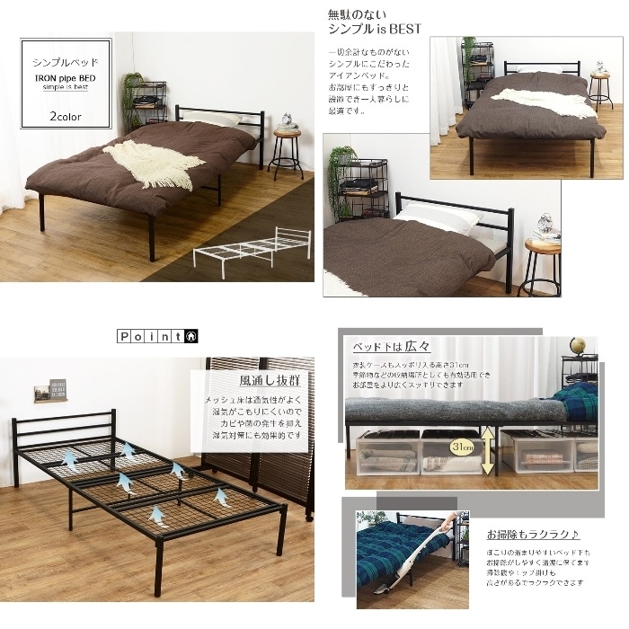 [直送5]シンプルイズベスト。 風通し抜群 一人暮らし向け シンプルにこだわったスチール製シングルベッドKH-3085WHホワイト4934257260732