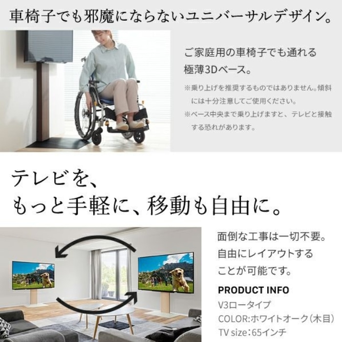 テレビスタンド WALL V3 WLTVB5W32 ホワイトオークベース ロータイプ 32~80インチ対応 [取寄商品]4589443467022