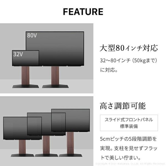 大型テレビに高さの自由を与え、視聴スタイルのみならず暮らし方さえも変えるテレビスタンド。 デザインにも磨きをかけたスタイリッシュなモデル。